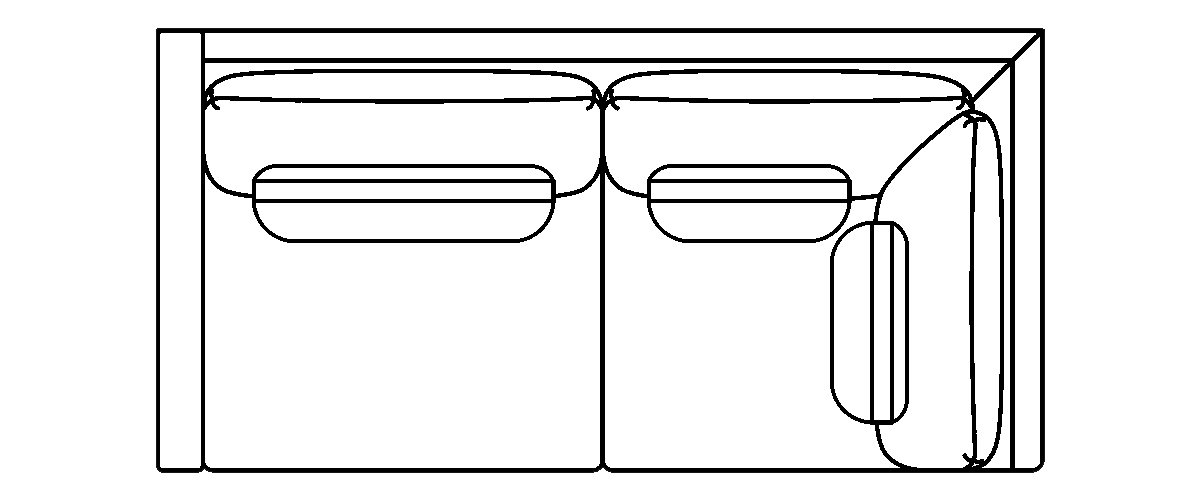 Standard Features: Seam only with 4.5" track Arm; boxed seat cushions; pleated knife-edge back cushions, self decking; welt along perimeter; feather box kidney cushions